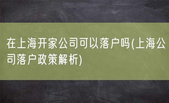 在上海开家公司可以落户吗(上海公司落户政策解析)