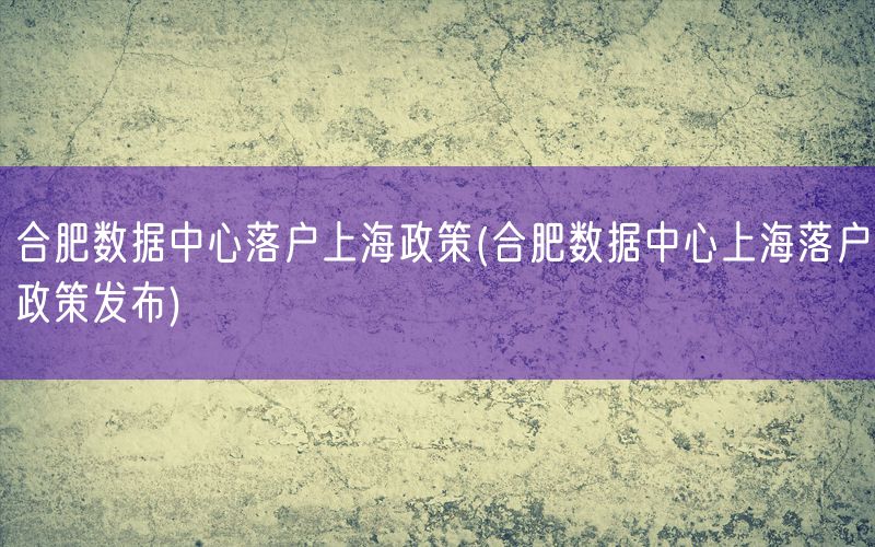 合肥数据中心落户上海政策(合肥数据中心上海落户政策发布)