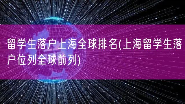 留学生落户上海全球排名(上海留学生落户位列全球前列)