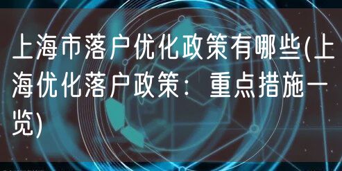 上海市落户优化政策有哪些(上海优化落户政策:重点措施一览)