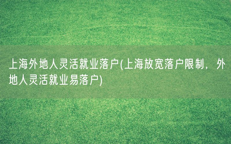 上海外地人灵活就业落户(上海放宽落户限制,外地人灵活就业易落户)