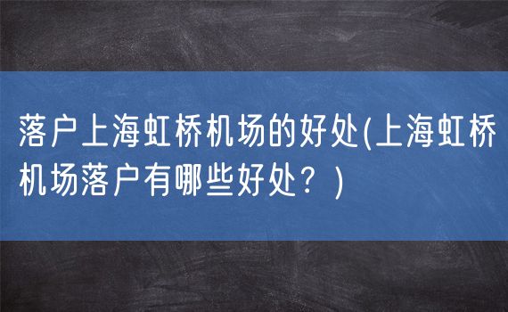 落户上海虹桥机场的好处(上海虹桥机场落户有哪些好处?)