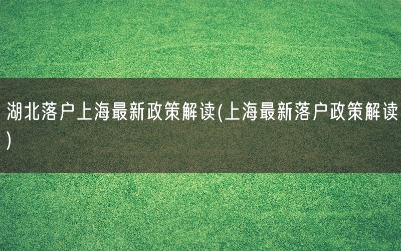 湖北落户上海最新政策解读(上海最新落户政策解读)