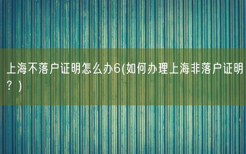 上海不落户证明怎么办6(如何办理上海非落户证明?)