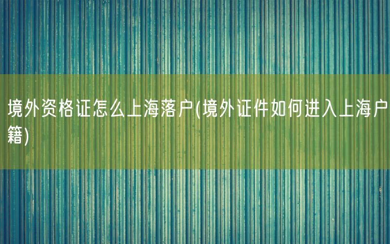 境外资格证怎么上海落户(境外证件如何进入上海户籍)
